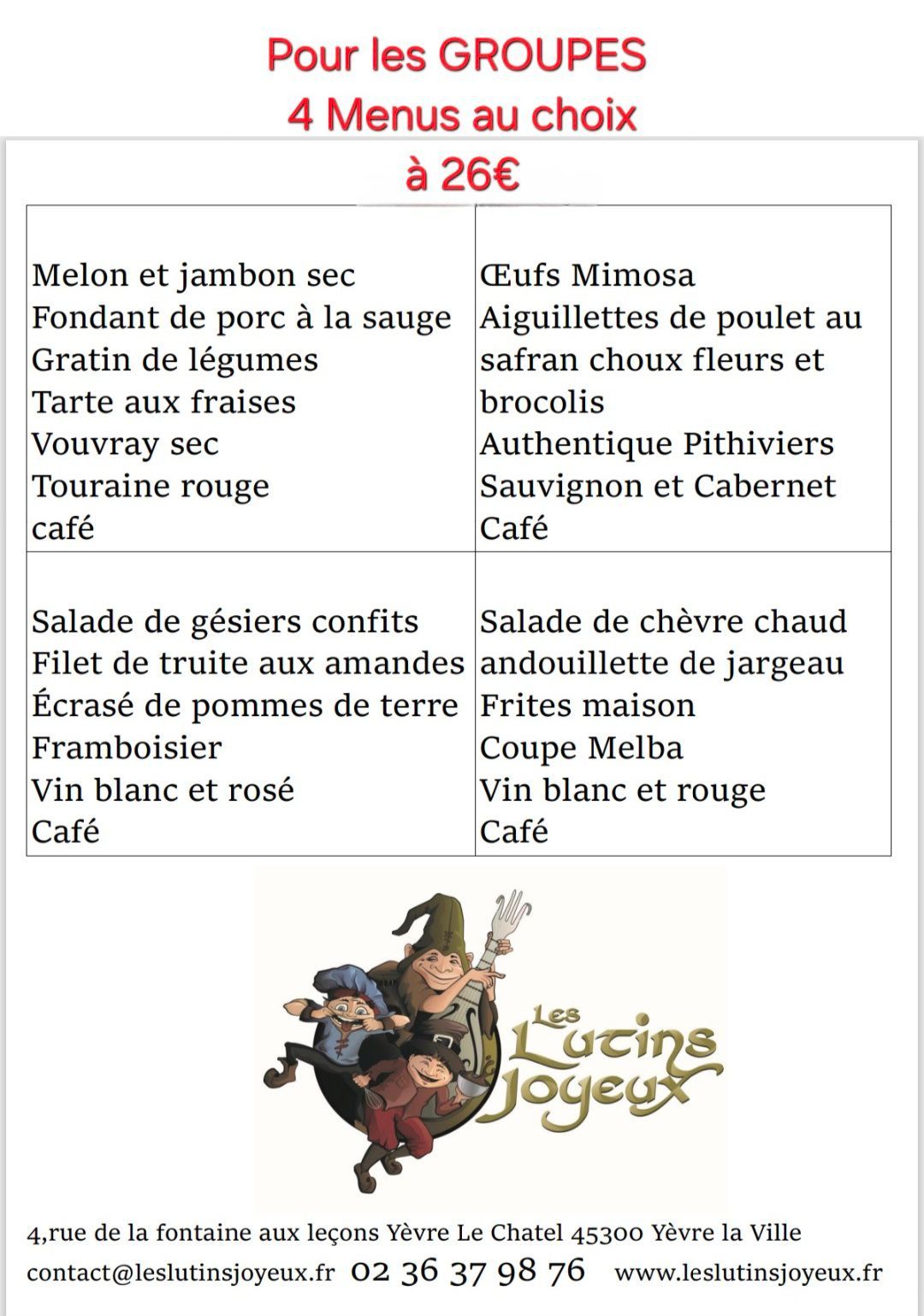 Menus pour les Groupes